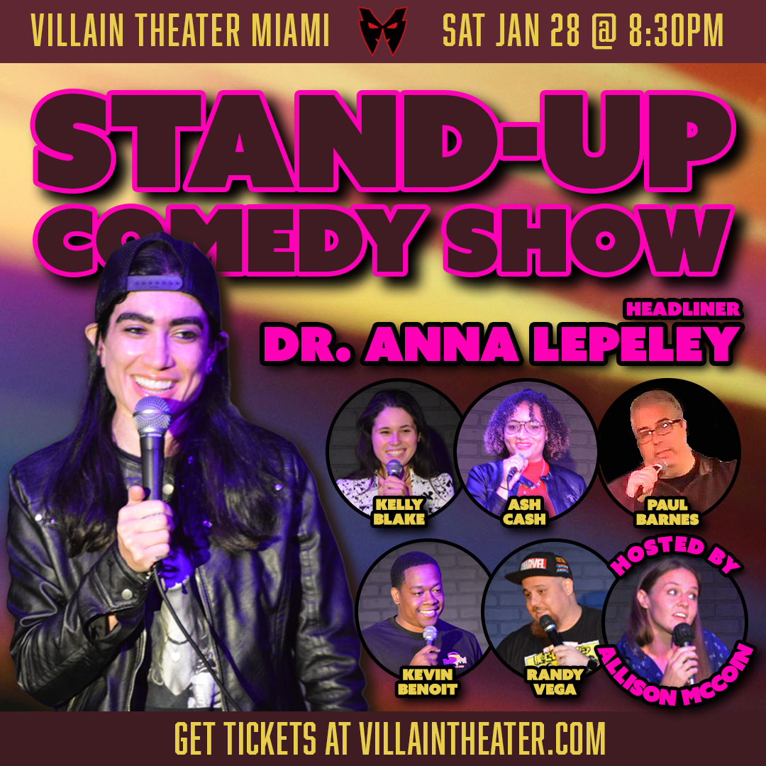 Join host Allison McCoin and friends for a live stand-up comedy show. Grab a drink at the bar and enjoy stand-up comedy sets featuring comedians Paul Barnes, Ash Cash, Randy Vega, Kevin Benoit, Kelly Blake and and headliner Dr. Anna Lepley.