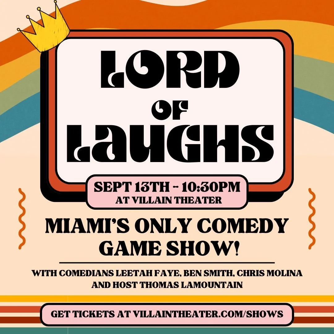 Villain Theater hosts stand-up comedy shows featuring the best hosts and local comedic talent in Miami every Friday night at 10:30pm. This week’s show is a special Lord of Laughs edition.